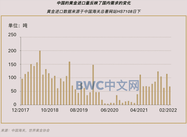 值得一提的是,据中国海关公布的最新数据统计,中国在2022年前两个月共进口了180吨黄金,而2021全年的进口量更是高达818吨,比2020年增长了120吨(每月的黄金具体数据细节请参考上图)。截至3月底,中国公布的官方黄金储备仍为1948吨,占总储备的3.4%,自2019年9月以来一直保持不变。(完)