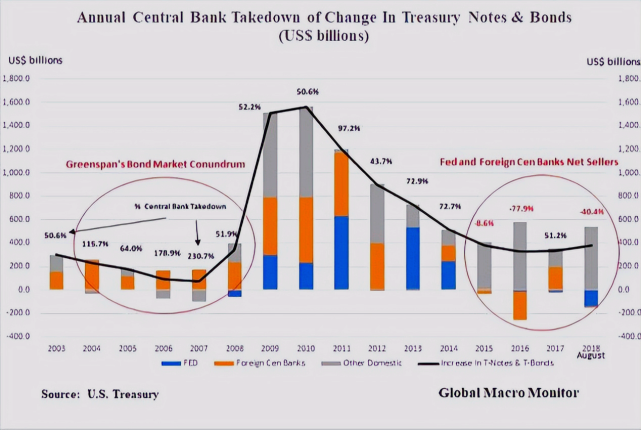 事实上,BWC中文网研究团队据美国财政部最近五年公布的国际资本流动报告(TIC)统计发现,在该报告名单上出现的30多位主要美债持有者净购买的债券总量并没有随着美国大放水而相应增加购买比例(具体趋势请参考下图)。