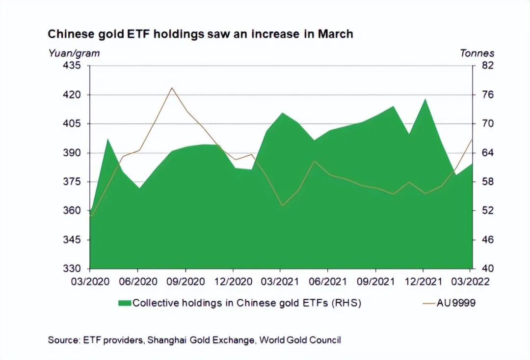 该协会两周前报告还显示,3月中国黄金ETF的总持仓量增至 61.8 吨,比2月底增加 2.4 吨。同时,三只新的黄金ETF上市,将选择范围扩大至15只黄金ETF。