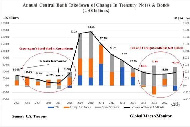 事实上,我们注意到,最近三年以来,全球央行净购买的美债总量并没有和美国大放水印钞的数量成正比例。而就在这个节骨眼,一件意料之外的事情发生了。