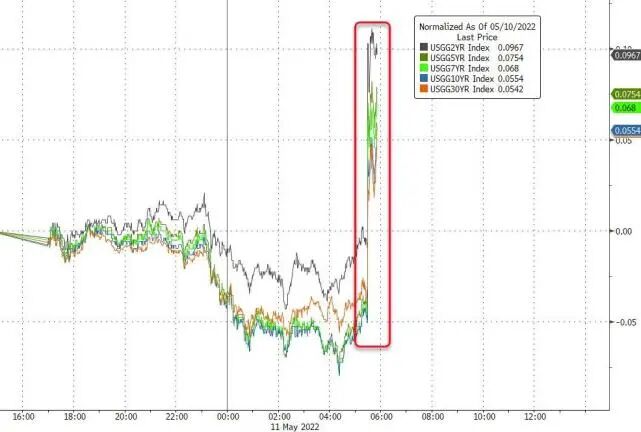 紧接着,美联储理事布拉德在5月16日还进一步称美联储落后于形势,今年所剩5次会议每次都应加息50个基点,他的话音刚落,市场立即有了反应,引发轩然大波,并给美债市场进一步带来压力,美债价格继续扩大跌幅。