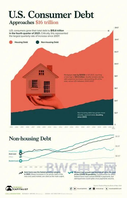 数据显示,仅在去年四季度,美国消费者债务的增长率就已经达到2007年以来的最高水平。另据美联储本月公布的最新数据显示,美国消费者债务正接近创纪录的16万亿美元。不过,随着美联储加快了加息缩表的步伐,在利率上升的情况下,美国的偿债成本就会变高。