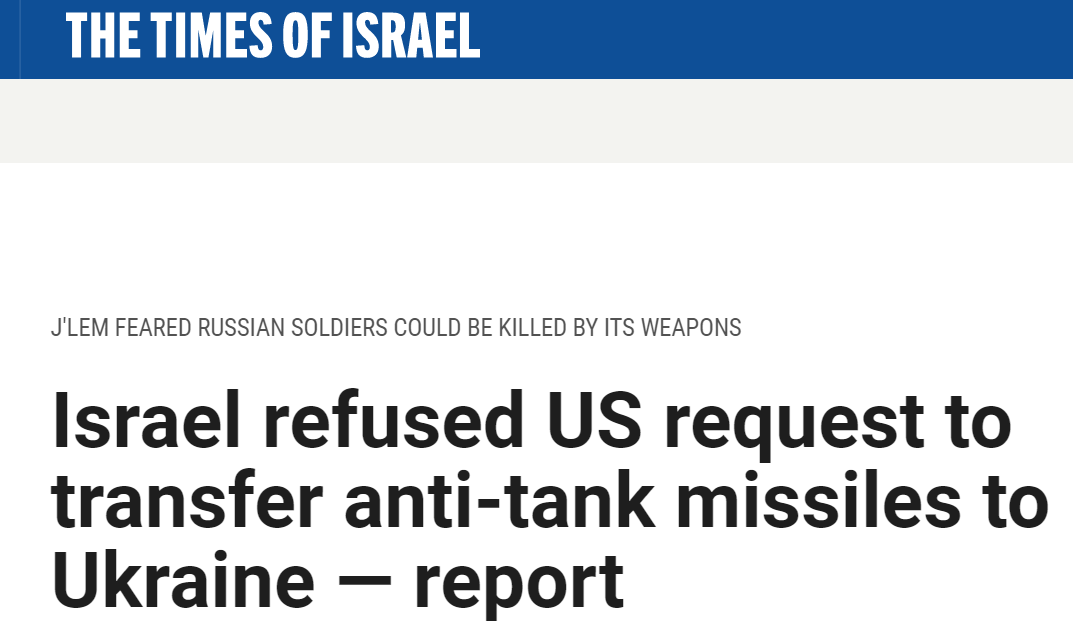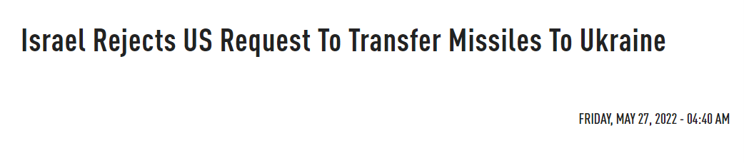 我们查询以色列时报在5月27日进一步证实了,上述以色列拒绝了美国关于以色列技术支持的先进战略性商品转让给乌的请求。分析认为,这也是以色列再次向美国经济说不和拒绝美国经济要求的佐证。