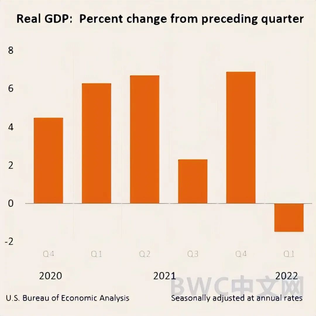 不仅于此,美国商务部5月26日发布了美国一季度GDP第二次测算报告,将美国一季度的GDP增速从-1.4%下修至-1.5%,这意味着一季度,美国经济按年率计算下跌了1.5%,是2020年二季度以来最糟糕的表现。(完)