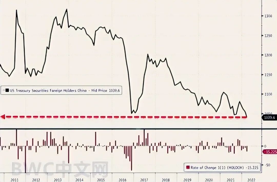值得一提的是,中国3月抛售了152亿美元的美国国债,自去年12月以来,中国已经连续四个月减持了美国国债,这四个月总减持规模达到413亿美元。目前总持仓降至1.0396万亿美元,美债持仓量降至2010年以来的最低水平,仍为美债第二大海外持有者。我们注意到,自去年2月以来,当时持有1.1042万亿美元,相当于在截至今年3月的一年间,累计减持规模达到646亿美元的美国国债,价值约为4319亿人民币的美国国债。