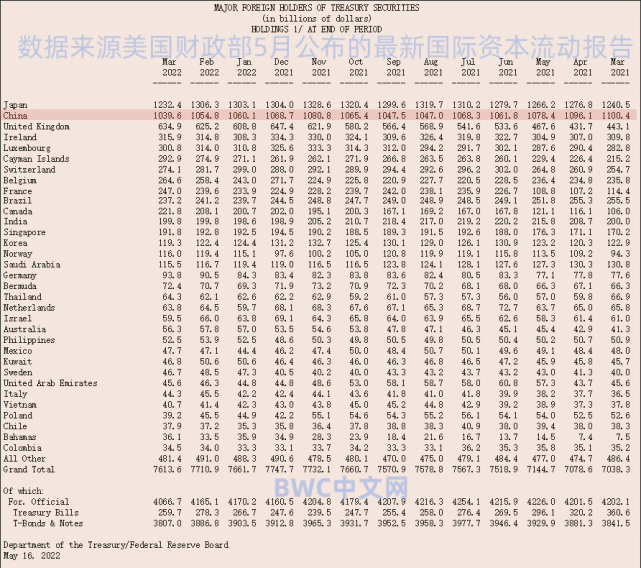 据美国财政部在5月最新公布的国际资本流动报告显示,请注意,美国官方持仓报告会有两个月的延迟惯例,3月份,全球官方机构出现连续三个月减持美债,总额高达485亿,其中3月抛售了324亿美债,为2020年以来的最大月度抛售规模。