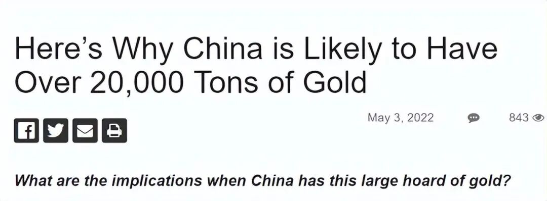 对此,美媒Zerohedge也援引Simon Hunt战略服务公司写给客户的一封信中称,中国实际或拥有3万吨黄金。比我们知道得多得多。这其中并不包括大量在过去被购买、储藏的黄金,它们也从未被列入官方储备之列。