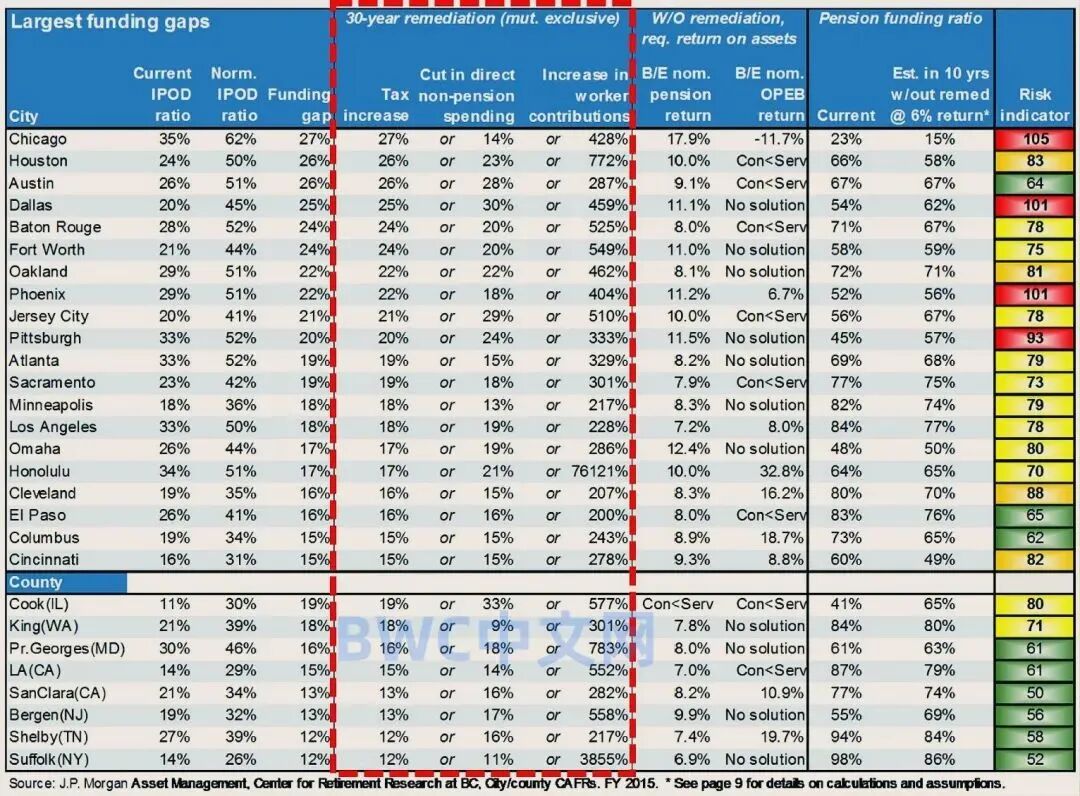 这家外媒称,美国的养老金已经为这些美国城市埋下了一颗定时炸弹,伊利诺斯州只是个开始。如果你住在下面的任何一个“红色”城市,可能是时候开始寻找另一个城市安家了。