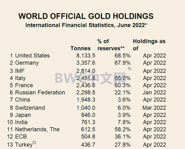 值得注意的是,就在日本向美元亮剑之前,就已悄悄地重视起黄金储备了。据世界黄金协会6月6日公布的最新数据显示,日本目前已公开的黄金储备量是846吨,是全球第八大黄金储备国。不过,世界黄金协会对此表示,日本目前公布的黄金储备有一部分没有入列,其中就有2021年3月增加的81吨黄金储备,这是日本财务省内两个不同部门之间的场外交易结果。