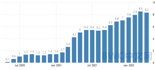 正如BWC中文网财经团队在跟踪分析中提及的那样,伴随美联储开启史上最强的加息缩表周期,全球多个市场或都将面临被剪羊毛的风险,而日本似乎难以幸免。美国4月通胀率较上年同期飙升8.3%,虽较3月的8.5%增幅有所回落,但仍位于近40年来高点。对于美国劳工统计局将于6月10日公布5月CPI数据,分析师普遍预期还将保持在8%以上的历史高位。