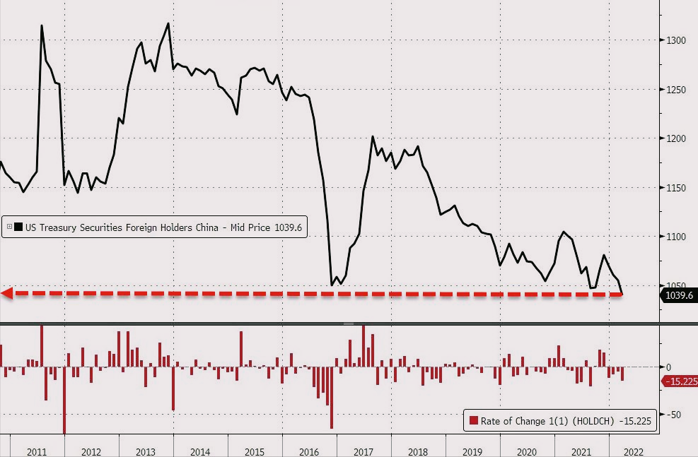 其中,中国减持了152亿美元的美债,且为连续第四个月减持,仓位降至2010年以来的最低,在此之前的三个月内,中国分别减持了53亿、86亿和122亿美元的美债,而从更长远的时间范围来看,中国在最近的12个月内更是大幅净减持了608亿美元美债(约合计4091亿人民币)。