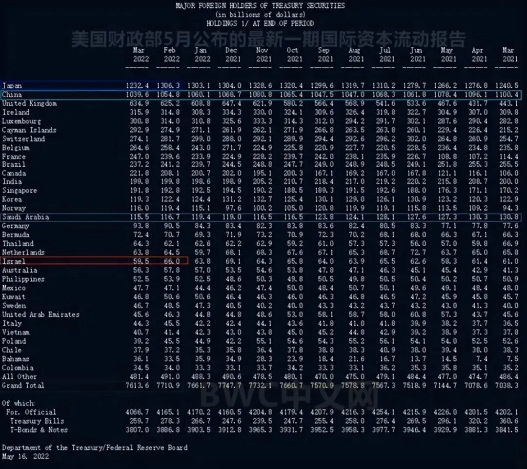 值得注意的是,美国财政部5月公布的最新一期国际资本流动报告显示,该数据延后两个月,全球买家在3月总计抛售高达973亿美元的美国国债。