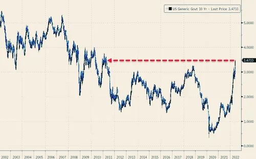 美东时间6月14日,10年期美债收益率尾盘上涨11.2个基点报3.48%,为2011年4月以来的最高水平。美债收益率与价格反比走势,收益率越高,说明美债价格越低,抛盘越多。显然,美债抛售潮正在加速,蝴蝶效应愈演愈烈。