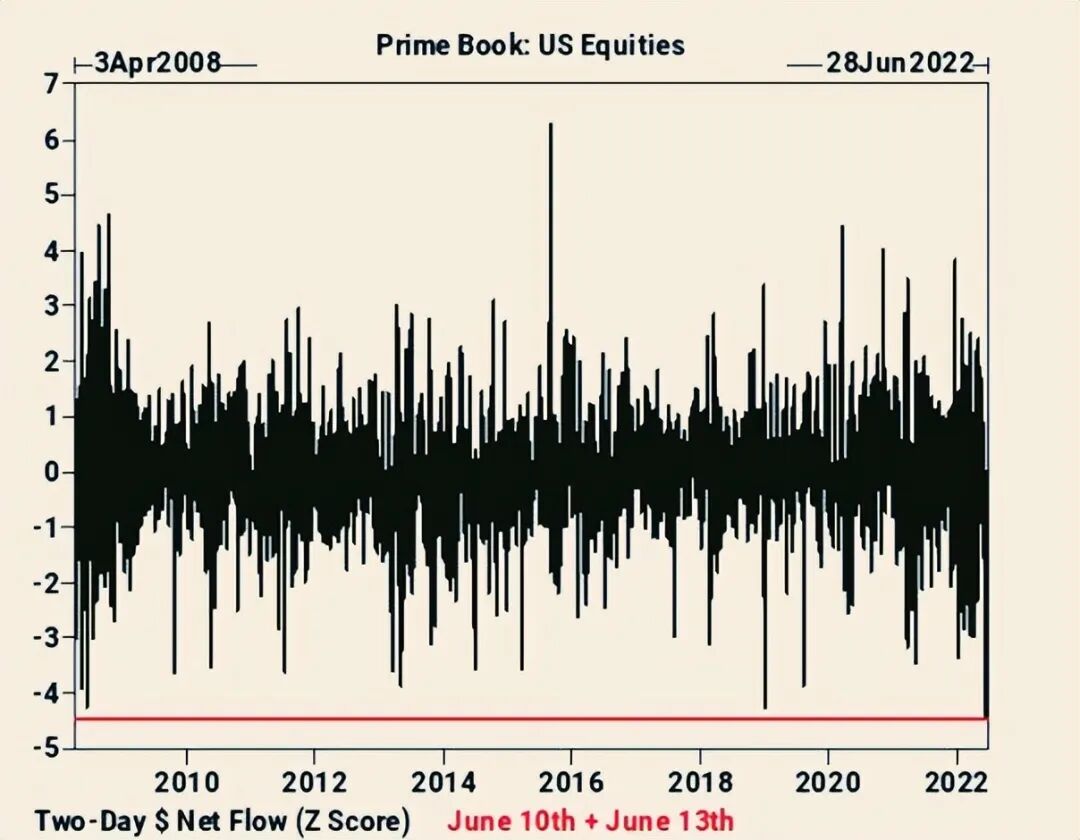 与此同时,随着美债收益率激升,美股标普500指数也跌入熊市,凸显市场对货币紧缩可能引发经济衰退的担忧,高盛追踪的数据显示,基金经理们已经连续第七天大幅度减持美国股票,过去两个交易日的抛售额达到2008年4月跟踪此类数据以来的最高水平。