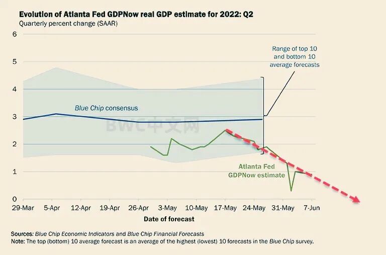 富国银行在6月14日发布的报告中称,美国经济面临着市场驱动的衰退,美股下跌或将经济拖入衰退,根据美联储的数据,截至2021年底,近四分之一(24.3%)的美国家庭资产投资于股票,这是一个重大风险,这种恶性循环可能已经被触发,在美国资产的猛烈抛售下,美国经济衰退论已经是共识。