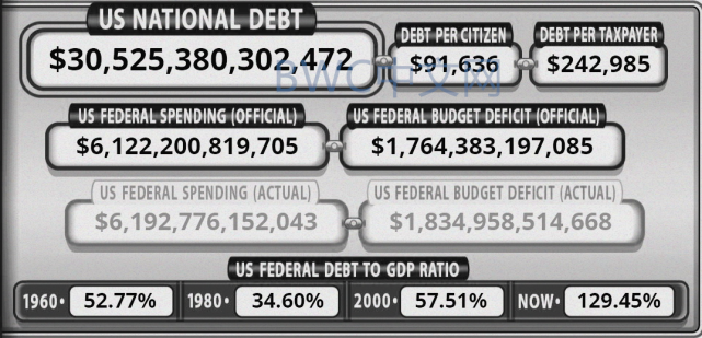 截至6月19日,美国联邦债务总额高达30.5万亿美元, 创历史最高水平,为GDP的约130%。这表明,美国经济长期处于入不敷出的状态,这也正是大多数美国人习惯于养尊处优、提前消费、不思进取的一个缩影。被誉为最有远见的华尔街商品大王、亿万富翁吉姆.罗杰斯不止一次地警告,美国是全球最大的债务国,债务无处不在,这迟早都要付出代价。无独有偶,事情果然有了最新进展。