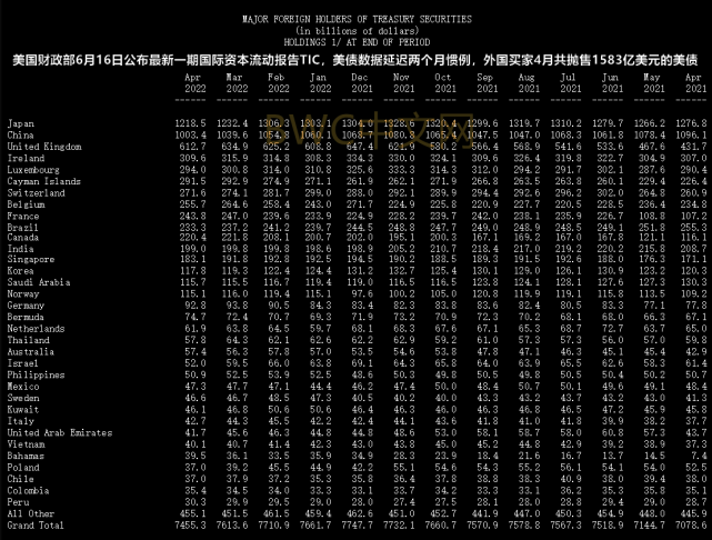 值得一提的是,事情的一个新变化是,根据美财政部报告, 中国4月抛售了362亿美元的美债,仓位降至2010年6月以来的最低至1.0034万亿美元。在美债海外主要持有者中,中国的抛售力度最大。并且自2021年12月至今年4月,中国连续5个月都在减持美债。而自去年2月以来,当时持有1.1042万亿美元,相当于在截至今年4月的14个月间,累计抛售规模高达1008亿美元的美国国债。这一抛售规模已高于德国持有美债的总数。
