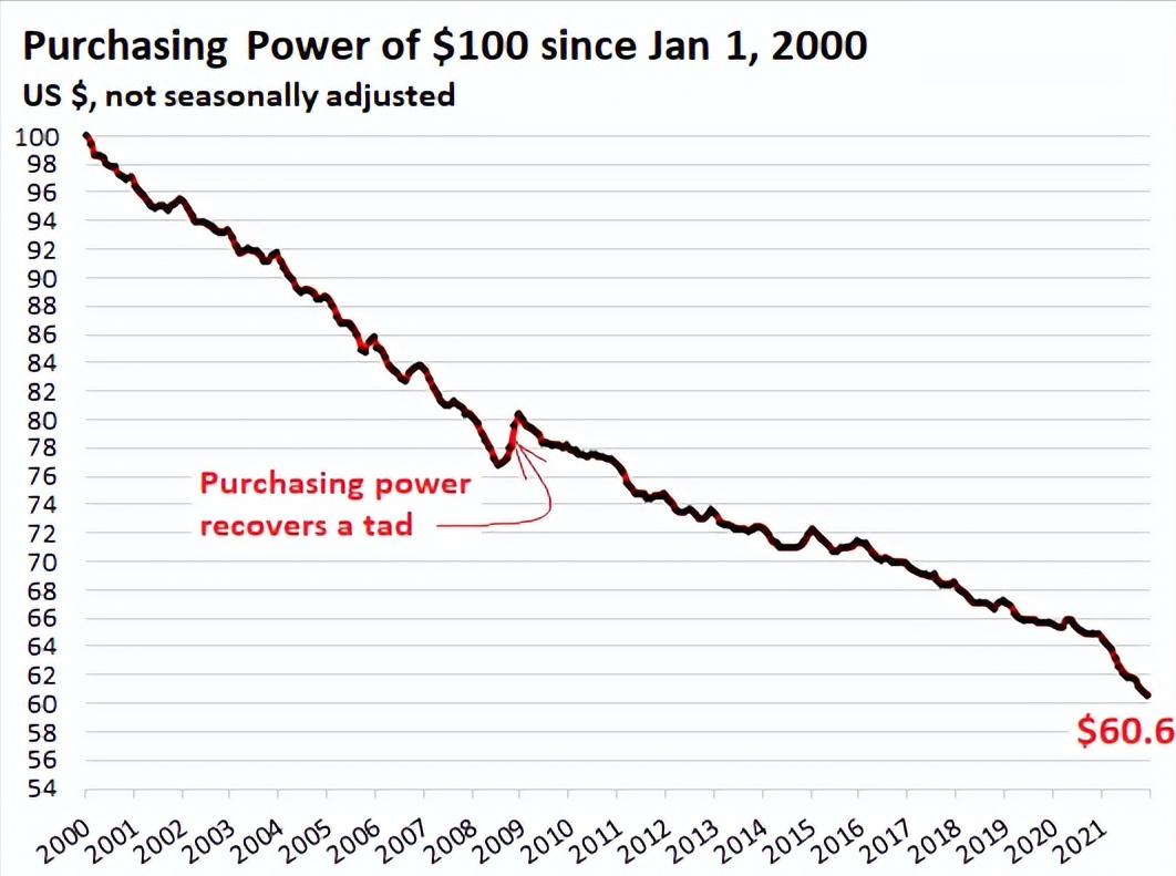 而这背后的逻辑信息是,自从美元放弃金本位制后,就意味着给了美联储一个可以自由发行钞票制造通胀的机会,货币发行不再制约于金本位制的限制,而是锚定美债规模,此时在人性趋利的贪婪下,往往会大量发行美元来刺激经济增长,这自然会引起货币价值稀释,再也无法找回往日“美金”的光芒。