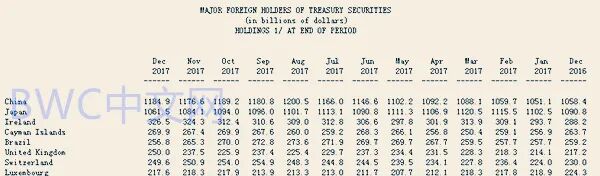 值得一提的是,BWC中文网查询历史数据看到,如下图:在2017年12月时,中国当时持有美国国债1.1849万亿美元,当时是美国最大的海外债券持有国,当时日本位列第二。再相比于今年4月持有的1.0034万亿美元,也就是说,在4年多的时间里,累计抛售了1815亿美元的美国国债,相当于在这期间,累计抛售了价值高达1.2万亿人民币的美国国债。