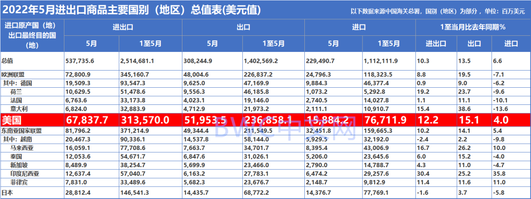 值得一提的是,如上图,根据中国海关总署6月9日公布的最新数据显示,今年5月自美国进口商品价值总额为158.84亿美元,5月向美国出口商品价值总额为519.54亿美元;1-5月自美国进口商品价值总额为767.12亿美元,比去年同期增长4%;1-5月向美国出口商品价值总额为2368.58亿美元,比去年同期增长15.1%。可以看出,美国对中国市场的贸易逆差水平依然非常高。(完)