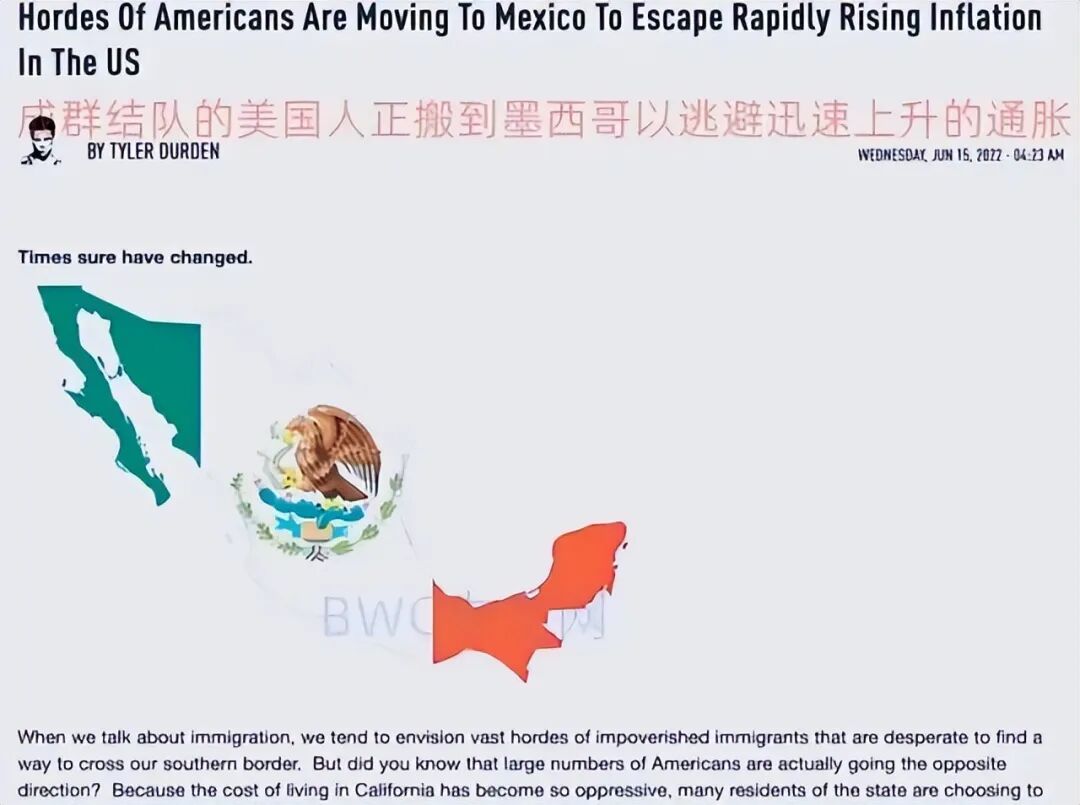 比如,近段时间来,在伊利诺伊州最大的城市芝加哥有数千位百万富翁逃离了该州,基本涌向了佛罗里达州、亚利桑那州和其他州,甚至出现成群结队的美国人正搬到墨西哥以逃避美国的高通胀。
