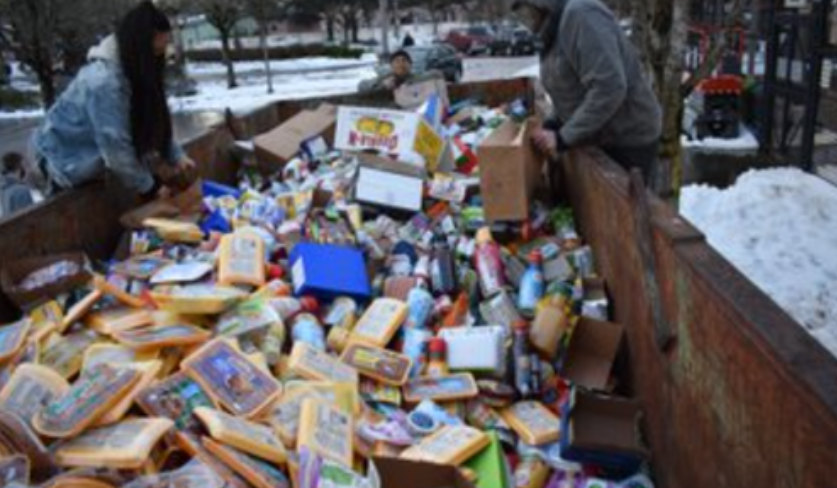 据悉,数千件被认为不再安全的食品商品被丢弃后,可怜的波特兰工人周二冲进了这个巨大的垃圾箱,希望能得到免费的食物。他们发现堆积如山的奶酪、肉类、果汁和各种各样的食物堆放在一个垃圾箱的边缘。