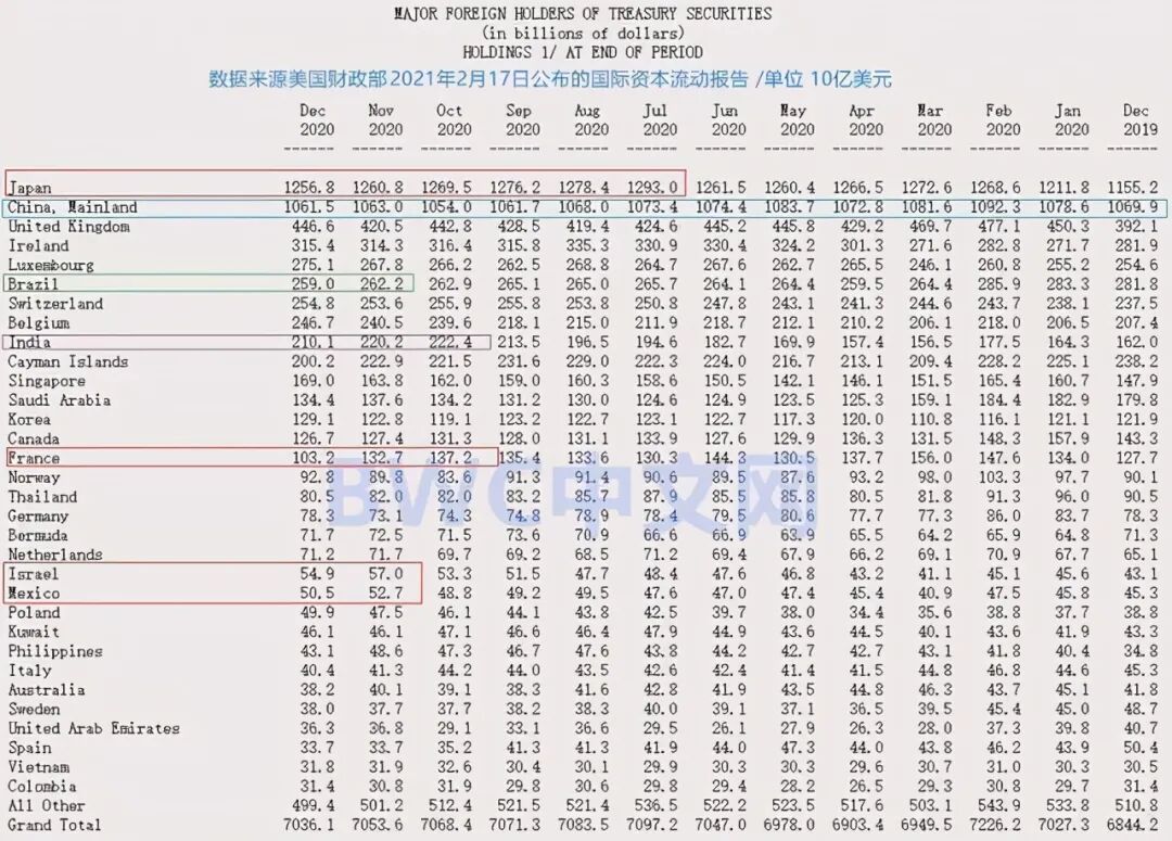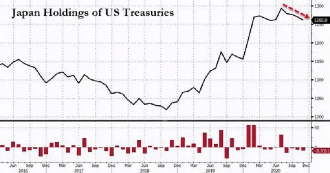 在2020年12月,至少12个美债的海外央行持有者不同程度地减持了美债。而就在这个时候,更加意外的事发生。