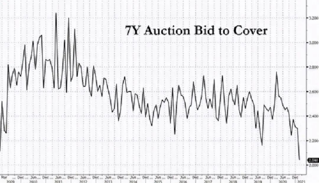 对此,美国金融网站Zerohedge分析称,这说明没有外国买家想要购买美债了,堪称美国国债拍卖的最尴尬时刻。更可怕的是,它出现在一个不该出现的时点,当前美债收益率恰恰因为市场的通胀恐慌而止不住地飙升,另一个尴尬的地方还在于美财长还在刚上任时暗示将发行50年期的超长期限国债。