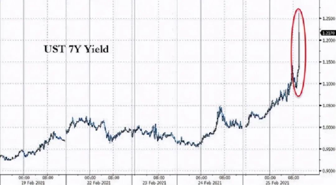 比如,据彭博社2月25日援引的数据显示,美国国债遭遇1月以来最大抛售潮,美债长期收益率飙升,国债价格暴跌正迫使更多基金经理缩减风险敞口,比如,包括贝莱德等机构也在撤回对美债的看涨立场,一只规模140亿美元的美债ETF损失惨重,同时,另一支610亿美元的5年期美国国债拍卖需求滞销,也非常低迷,投标倍数为过去十年来倒数第二低。