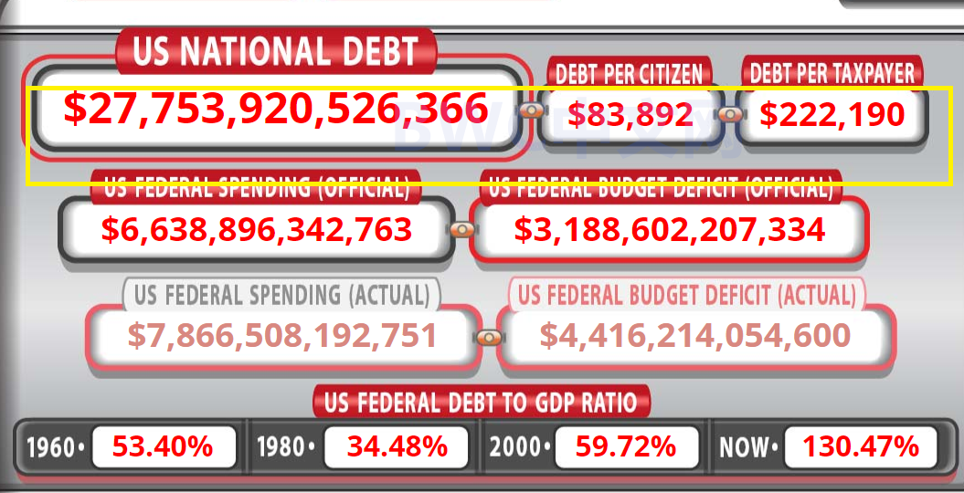 事情的另一个新进展,截至1月5日,美国联邦债务总额已堆积至高达27.8万亿美元的天文数字,如下图,同时,平均每个美国纳税人为此背负83,892美元债务,每个美国公民为此背负222,190美元债务,然而将集中了少数财富的美国富翁和大多数处于新冠病毒困境,甚至无法医治的美国人对比而言,显然,这是不公平的债务负担。似乎也是美国经济正在被揭开的另一层遮羞布。