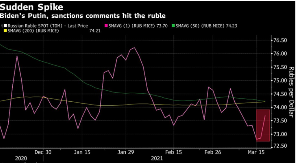 据媒体3月18日消息,受美元或将限制举措预期的影响,俄罗斯货币卢布3月17日跌至三周以来最高。与此同时,由于俄央行此前宣布将很快加息,因此俄罗斯的主权债务被认为风险增加。不过,卢布回撤,债券收益率攀升,俄罗斯债务免于违约的成本猛增。