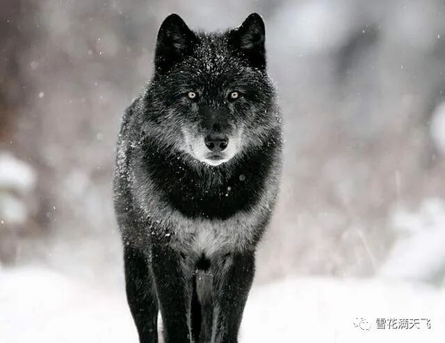 黑狼凶狠狠地盯住这个不速之客,自己好不容易逮到一只白狐,打算美美吃上一顿,它可不想到手的鸭子飞了。