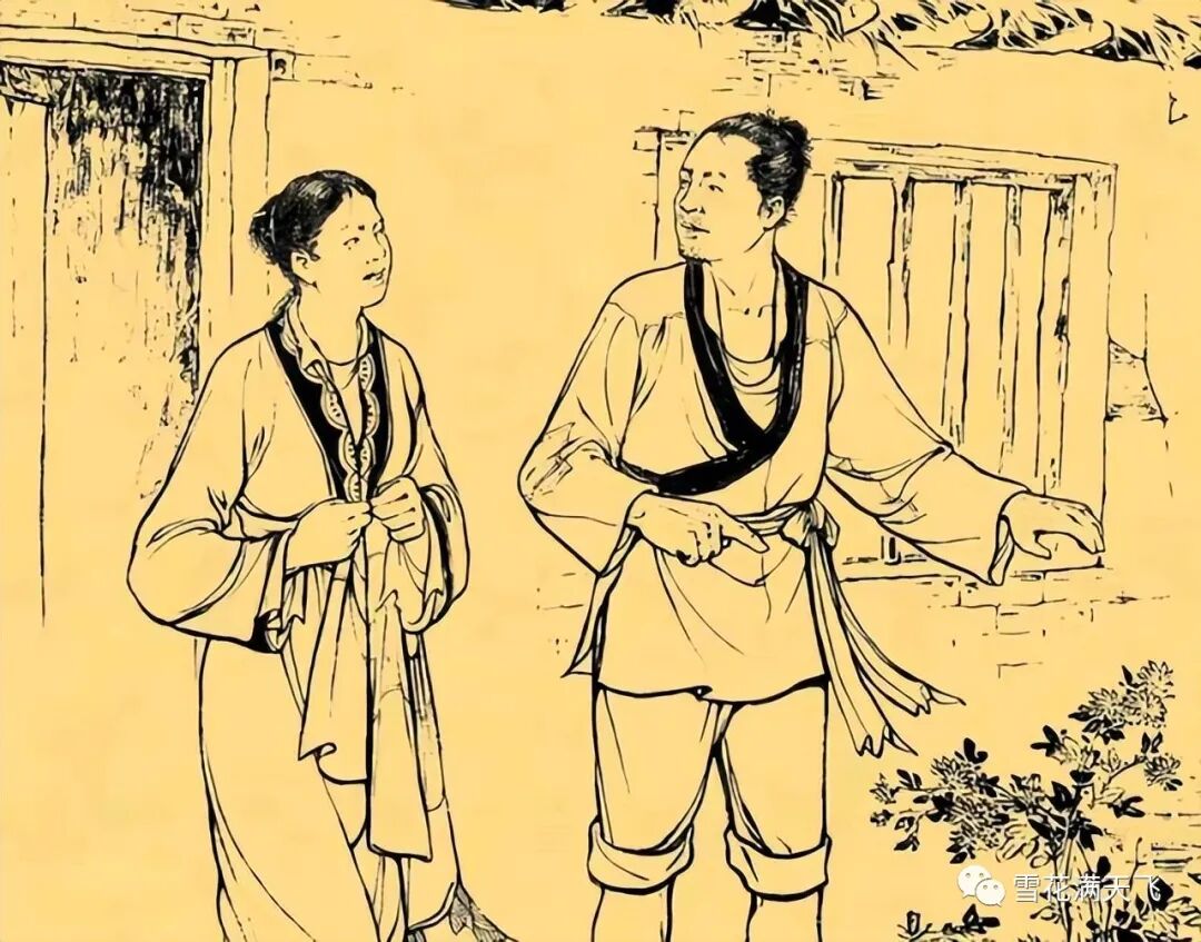 当时他坐在院子中一边吃着馒头,一边和姜寡妇攀谈。