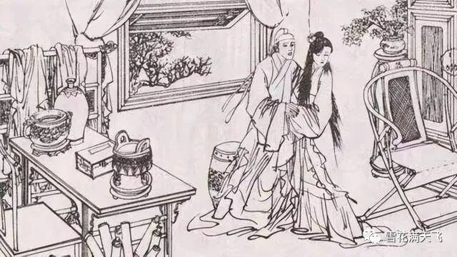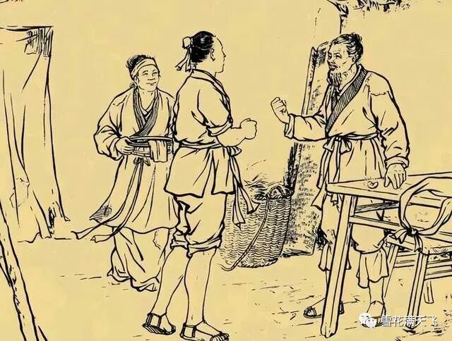 当父子二人路过小桥时,突然迎面走来一位红衣女子。