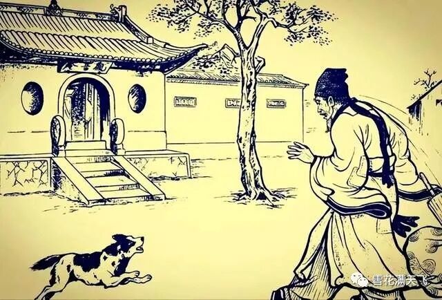 黑狗刚跑进大院,仆人拿着木棍,想要将它撵走。