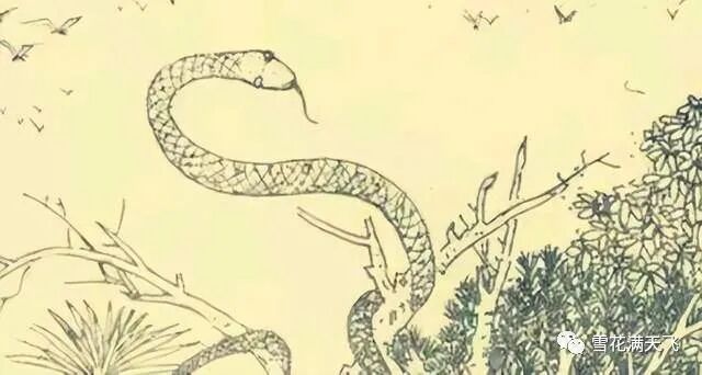 就在老鹰即将飞走时,只见一条白蛇窜出来,紧紧地缠住老鹰,试图救下青