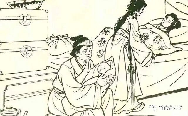 抬头远望,只见一名年轻的白衣女子,怀中抱着一个婴儿,时不时流着泪水。