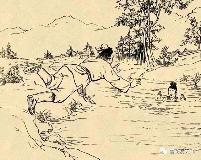 抬头一看,只见对岸一个年轻女子,不慎掉入小河中。
