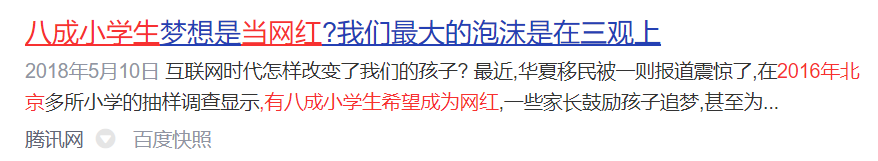 2016年,北京多所小学的抽样调查显示,有八成小学生希望成为网红。