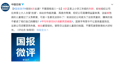 论价值观,成年艺人可能还有思考的能力,但这些连青春期都不到的孩子,三观认知尚未建立完整,就被丢到一个商业氛围如此浓重的圈子里,怎么可能是什么好事。