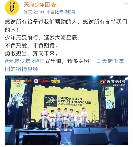 8月20日,偶像组合“天府少年团PANDA BOYS”在成都发布单曲,宣布出道。