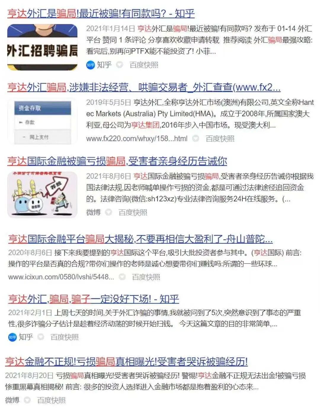 根据亨达集团官网显示,该公司于1990年成立,是一家提供专业金融服务的跨地域企业。但百度搜索却显示,此前,该公司涉嫌外汇交易“杀猪盘”骗局,已有多位网友表示在“亨达集团”平台上被骗过钱。