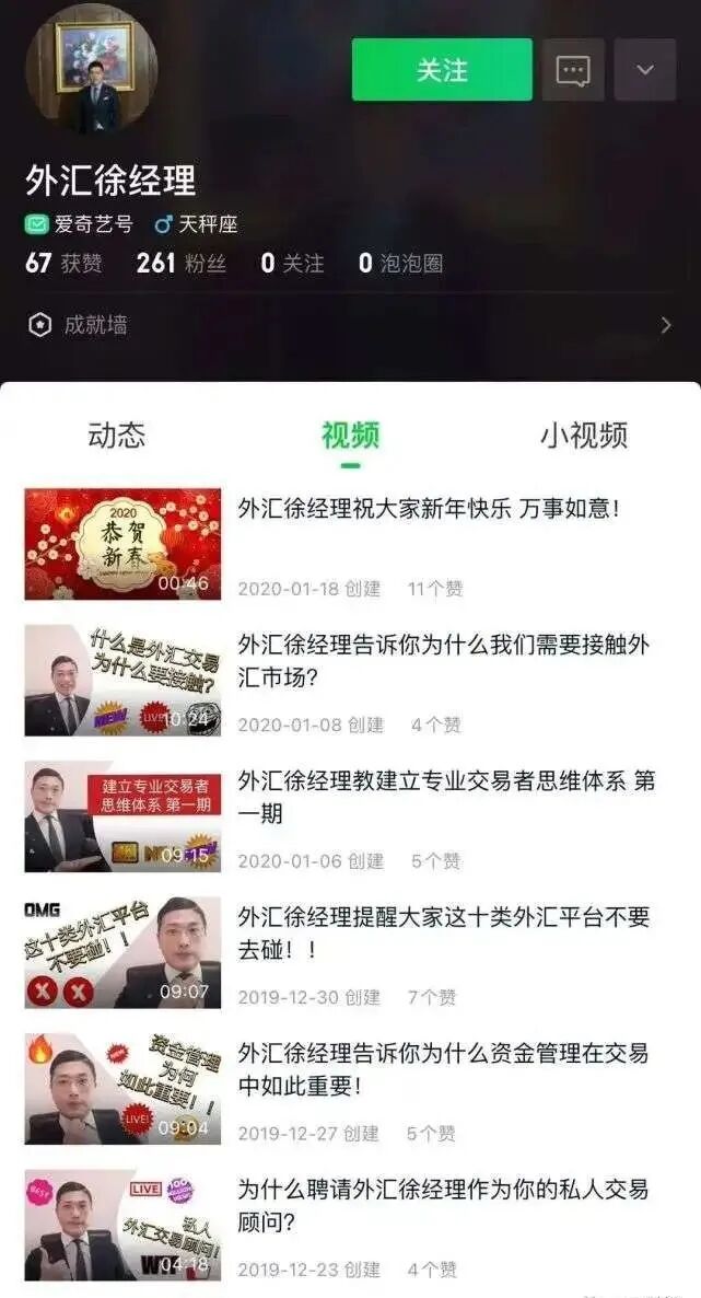 前面提到,徐勤根是从事金融行业的,从他社交平台来看,他曾多次发布视频自称是外汇交易人员,宣传亨达集团,并自称是亨达集团在中国市场的地区经理。