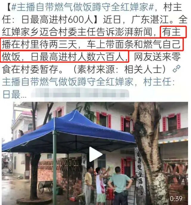 甚至,还有主播自带燃气做饭,在村里待了两三天,只为了蹲守全红婵家。
