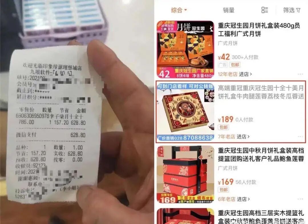 却有超市将这个原价189元一盒的月饼,擅自加上了李子柒的名字,买到了786元一盒的高价: