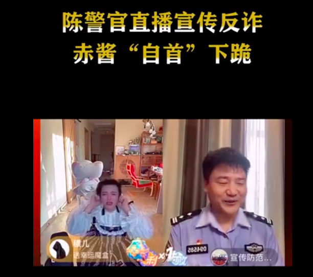 主播赤酱就更好笑了,当陈警官分享有些诈骗犯会装成美女骗钱,赤酱吓得赶紧“自首”: