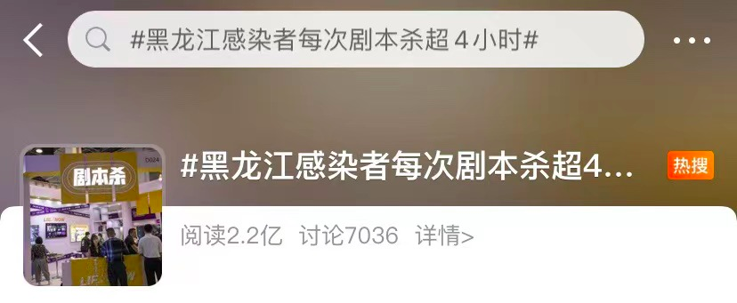 公开信息显示,确诊病例1曾连续3天在哈尔滨玩剧本杀,细致到每次剧本杀玩的时间都被公布出来。