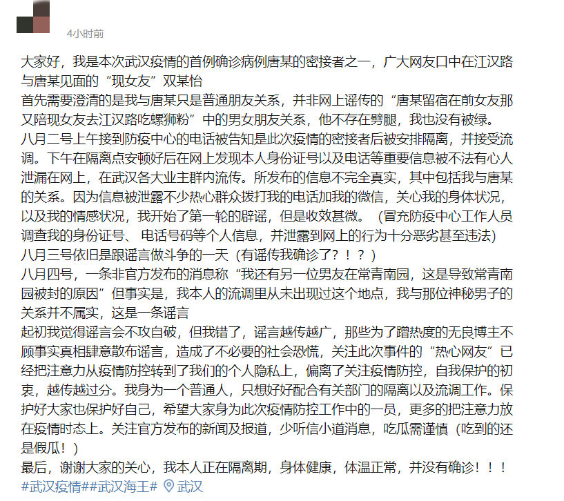 但详细的信息是为防疫作服务,而不是网暴的素材,不是吃瓜的源泉,更不应该成为谣言的温床。