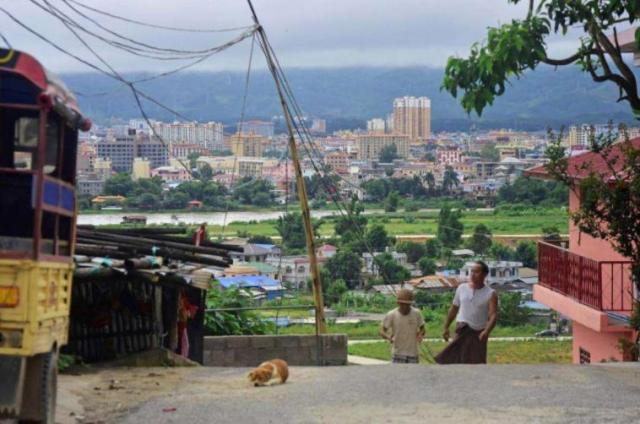 在姐告,站在国门口就能清楚的看见对面准备过境的缅甸等人;在木姐,也一样。