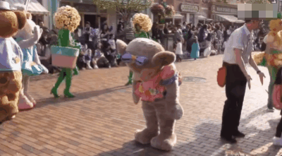 为了保护小朋友们的童心,直到玫玫被送走,都没有取下玩偶头套。这不仅仅是演职人员的敬业精神,其实也是迪士尼的要求——在任何时候都不能在游客面前脱掉服装。
